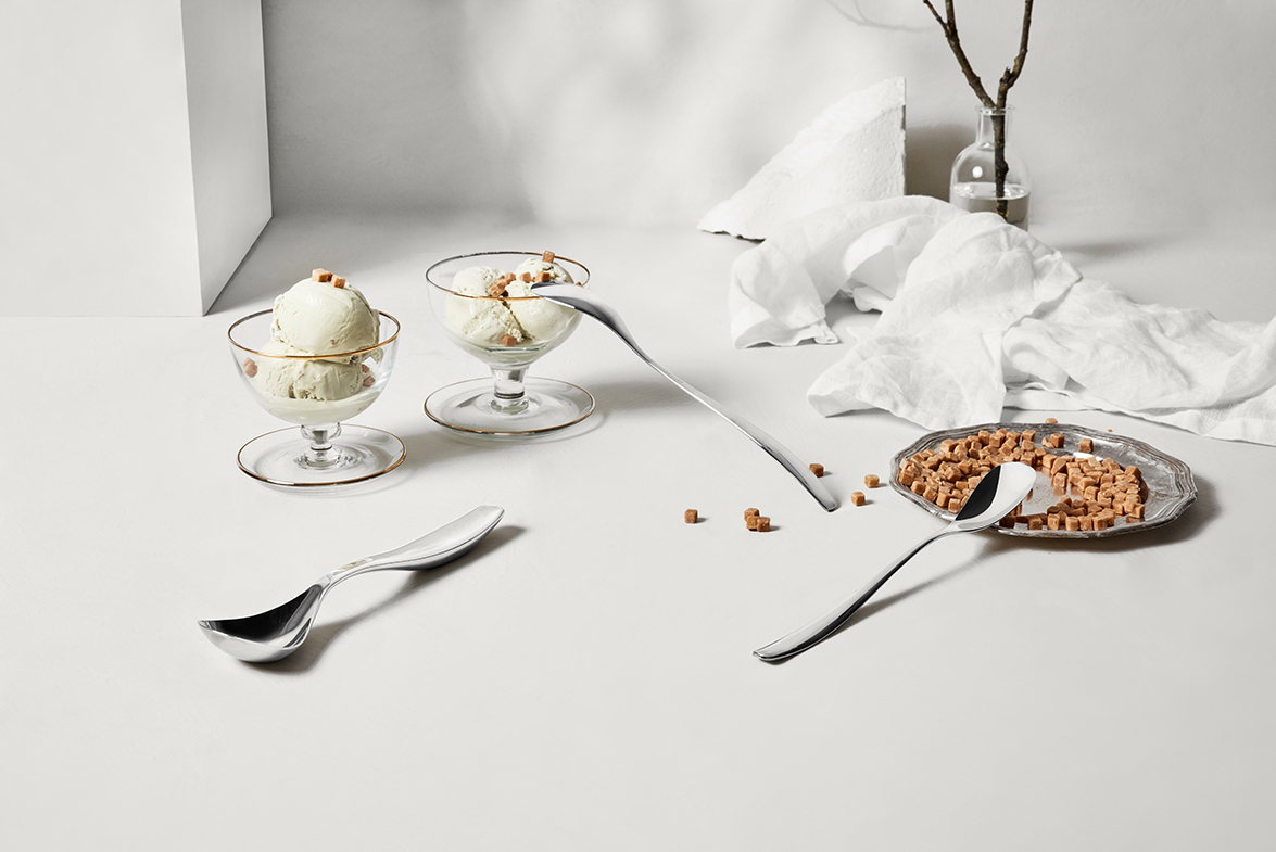 Dessert gir det lille ekstra etter ethvert godt måltid, og issettet er laget for å gjøre dessertopplevelsen enda et hakk bedre. Designet skal skape assosiasjoner til snø og is, og er inspirer av de lange, slake linjene man ser i norsk snølandskap.