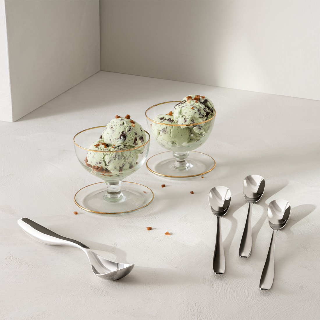 Issettet fra Hardanger Bestikk tar dessertopplevelsen til nye høyder. I tillegg til å være praktisk, lager kuleisskjeen elegant kulerunde porsjoner i ett enkelt tak. Med ergonomisk utforming og med is skjeer som har ekstra lengde, får du et produkt som passer perfekt når alt du trenger en utsøkt iskremopplevelse.